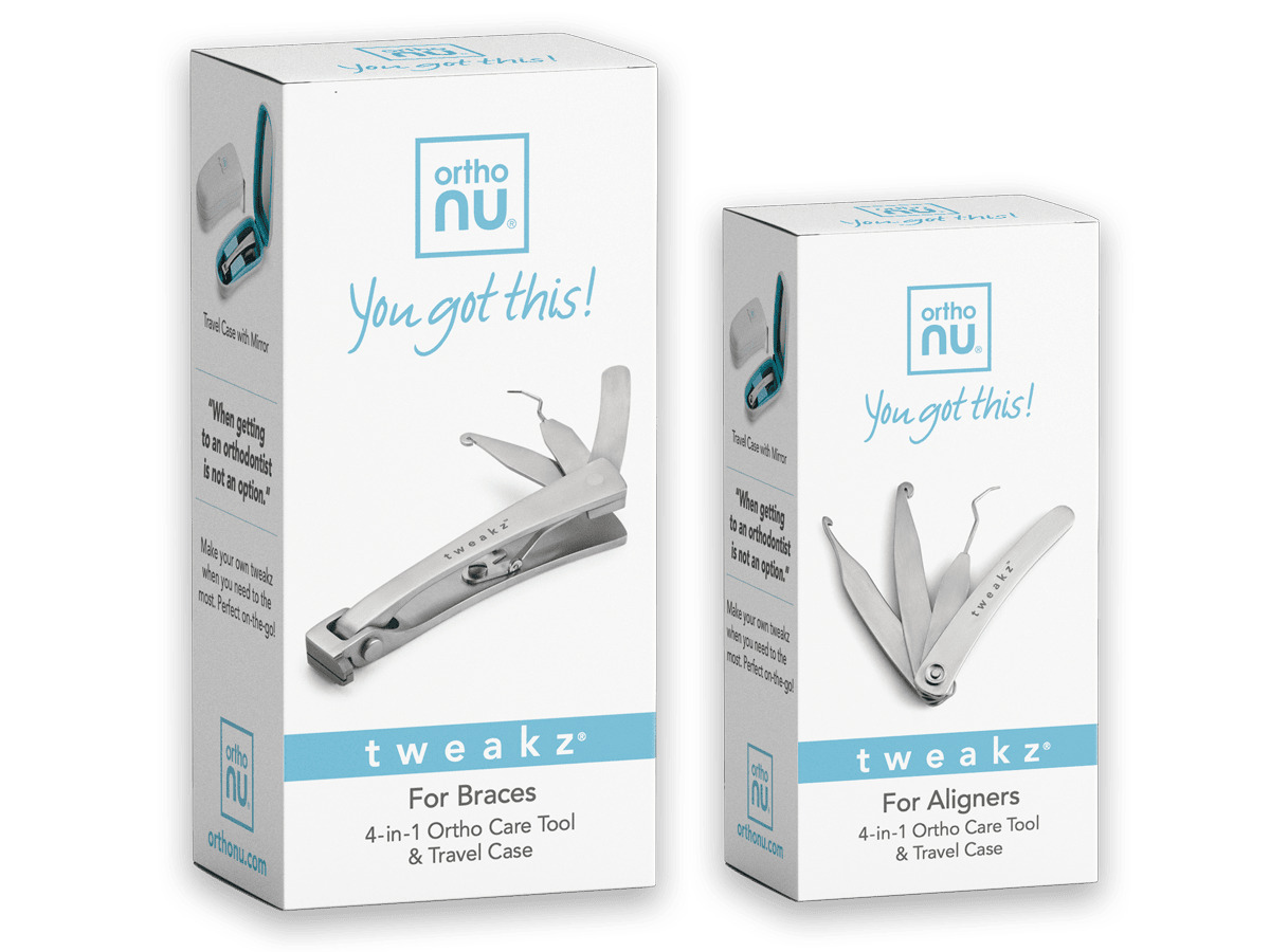 That’s why Tweakz for Braces was the first product. It includes a flush distal end cutter that safely trims wires without leaving sharp edges or loose pieces, unlike old nail clippers. The dislodged bracket remover clears broken brackets, while the rubber band applicator makes changing elastics easy. The diamond dental file smooths rough spots on brackets, hooks, and bands.